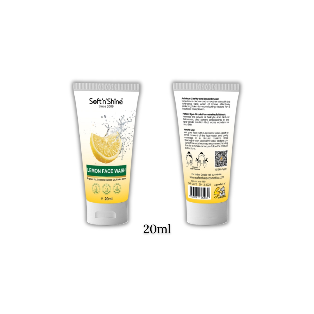 Refresh and renew your skin with the zesty power of Soft n Shine Lemon Face Wash — a purifying, spa-grade formula infused with skin-loving vitamins.