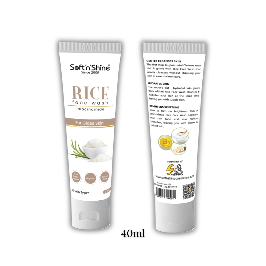 Achieve the radiant clarity of glass skin with Soft n Shine Rice Face Wash.